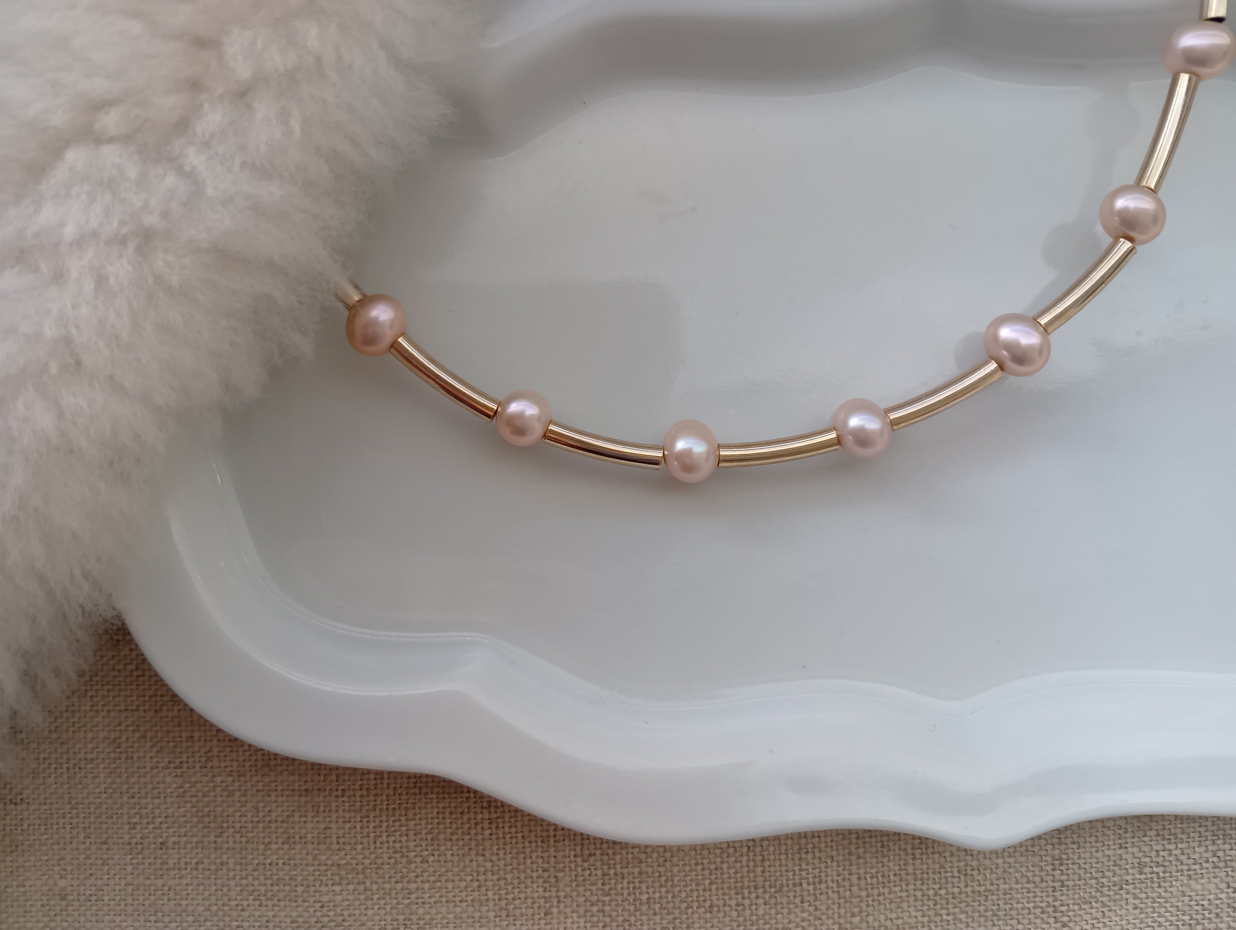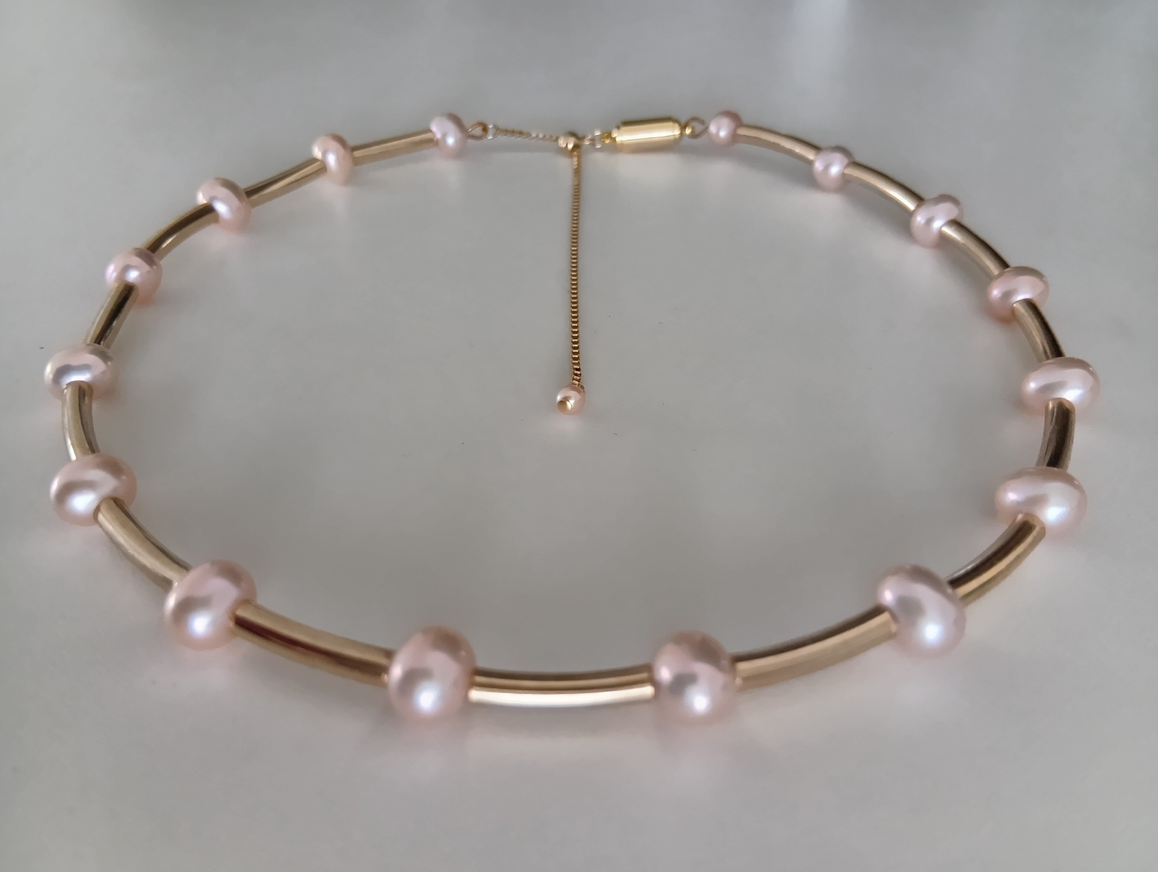 スプリングピンクパールチョーカーネックレス(金具はゴールドカラーのみ)